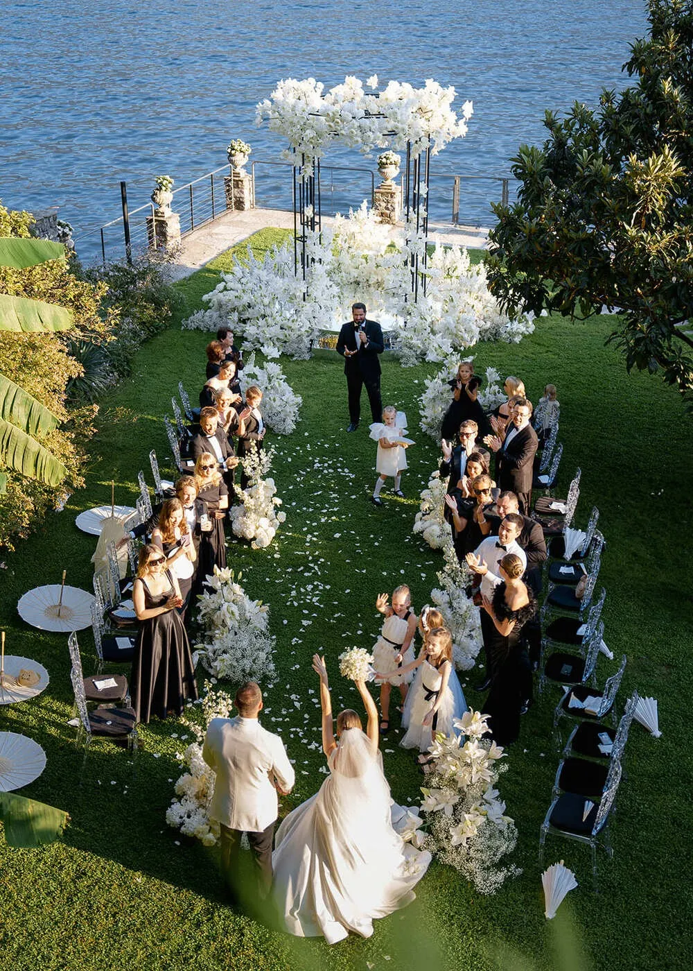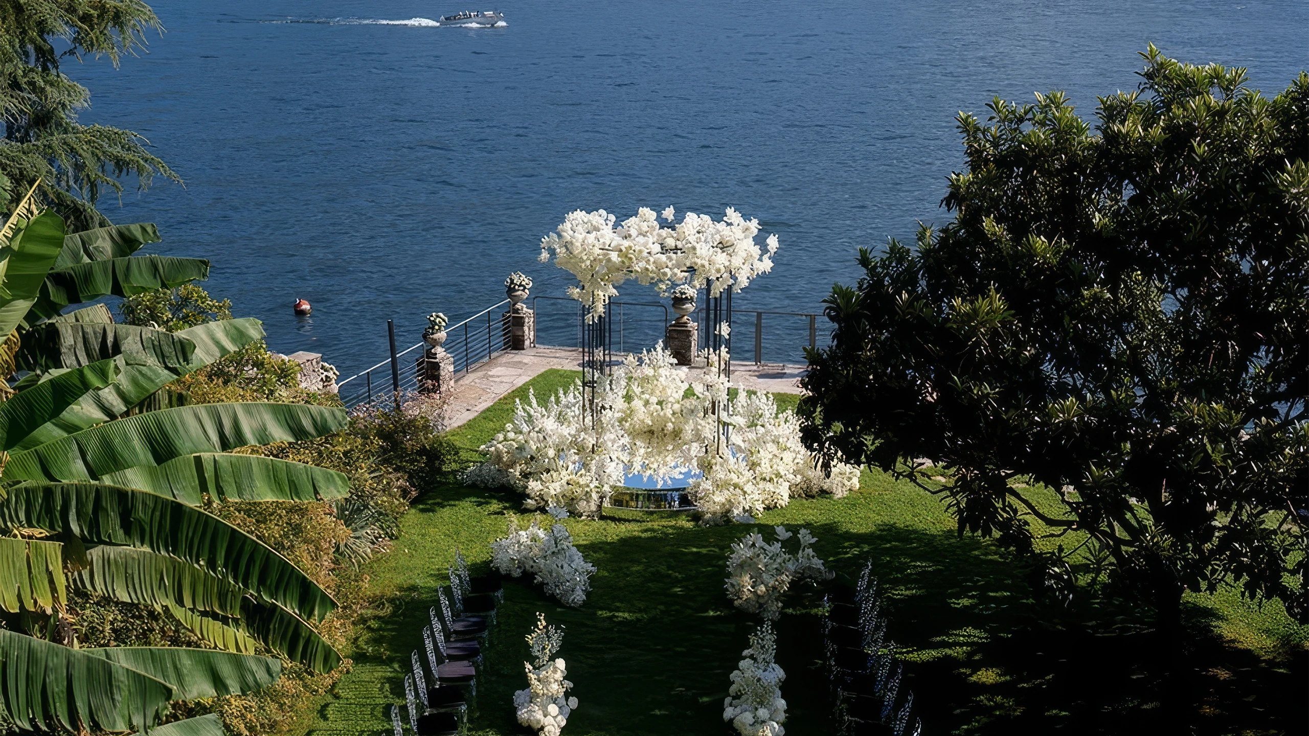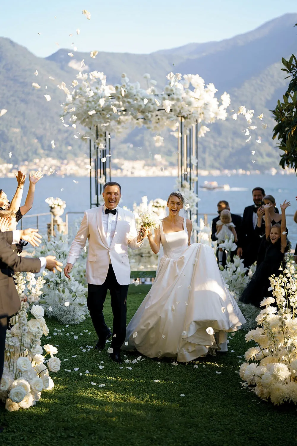 A stylish and minimalist black-and-white wedding with a strict dress code and sleek, contemporary design. Perfectly suited for a couple who loves a clean aesthetic and architectural decor, set against the backdrop of a luxury Italian venue.