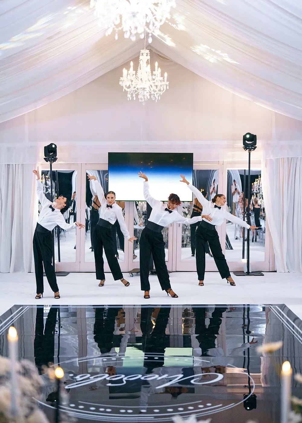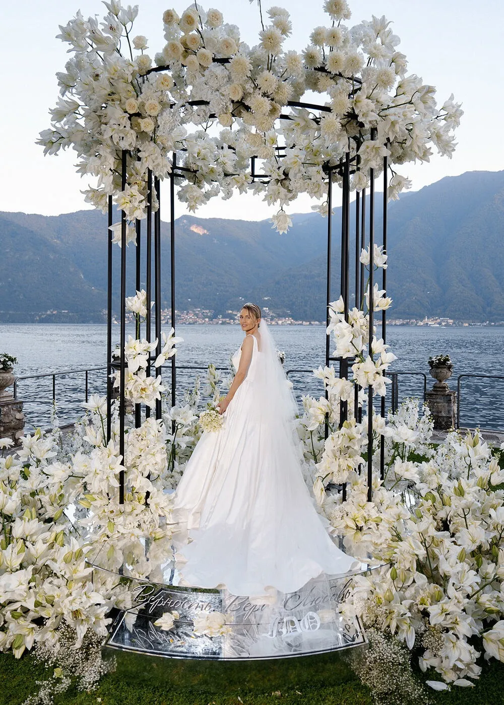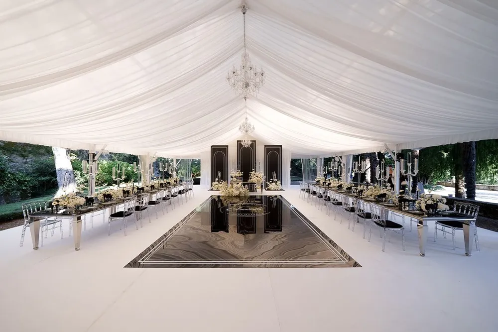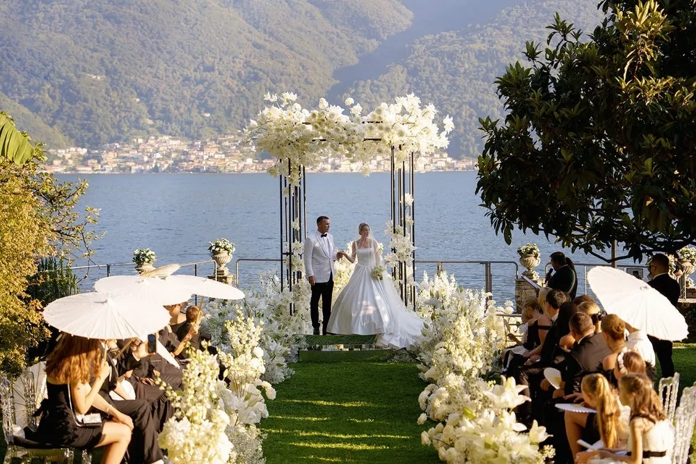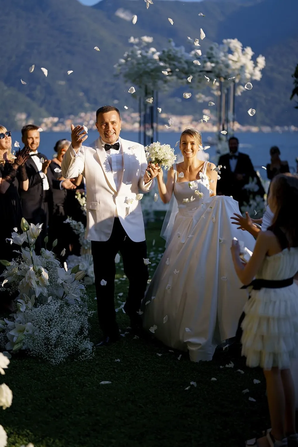 A stylish and minimalist black-and-white wedding with a strict dress code and sleek, contemporary design. Perfectly suited for a couple who loves a clean aesthetic and architectural decor, set against the backdrop of a luxury Italian venue.