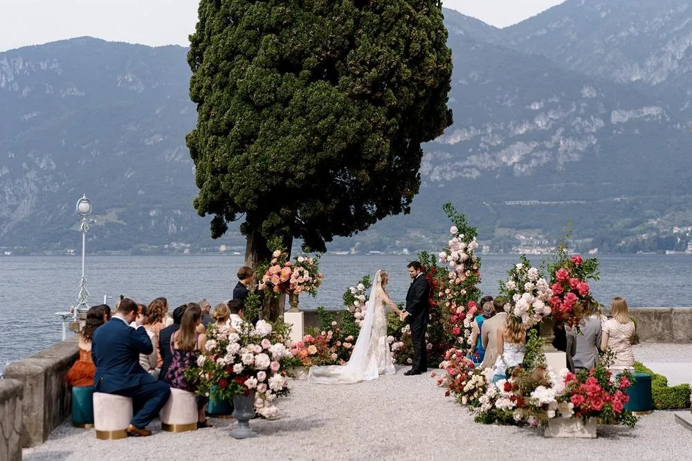 A refined destination wedding with mirrored tables, soft floral accents, and minimalist design. Held at Villa Aura del Lago, this wedding exuded contemporary elegance with breathtaking views of Lake Como.