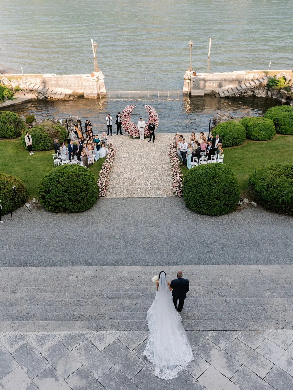 A dreamy Italian wedding with a soft pastel color palette, classic floral styling, and live opera singers from La Scala. Villa Erba served as a majestic setting for this romantic and elegant celebration.