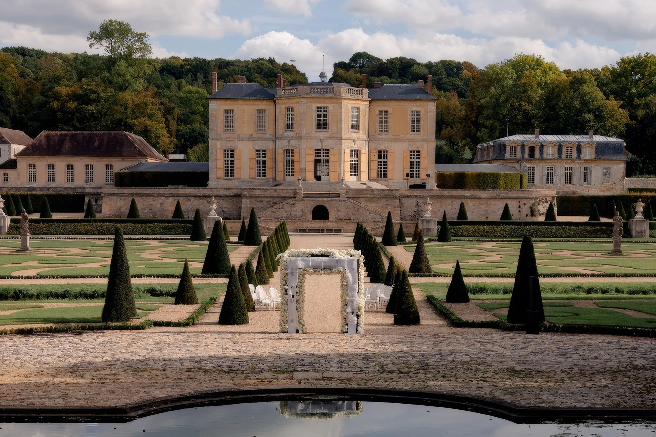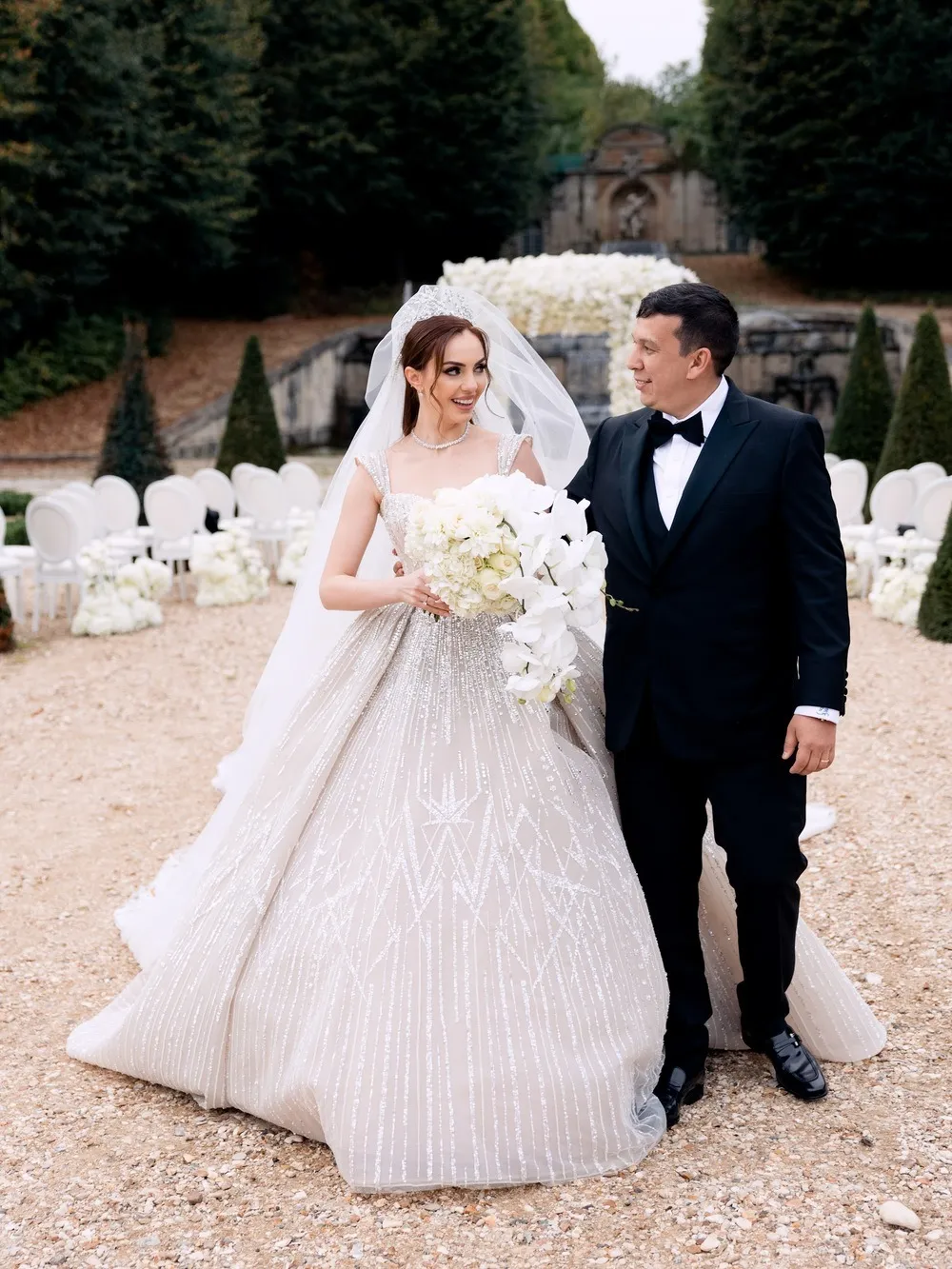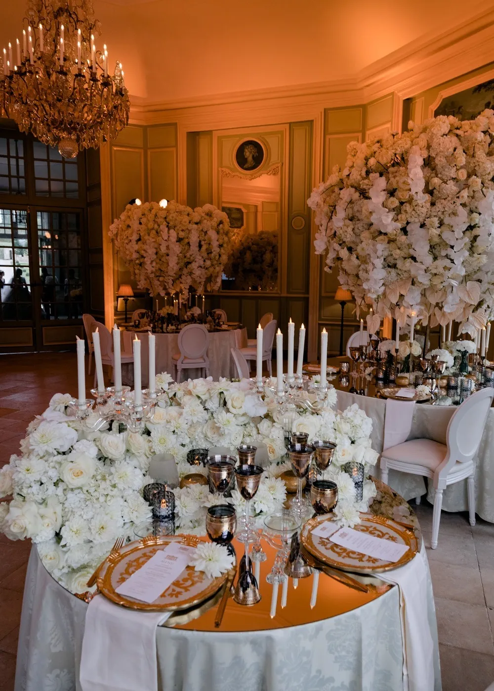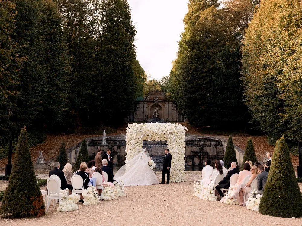 An opulent wedding in a Parisian château, featuring rich colors, oriental décor, and exquisite details. This intimate celebration brought together cultures, styles, and timeless French architecture.